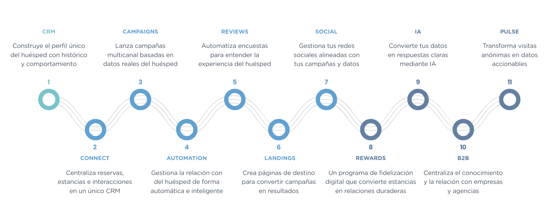 La transición del CRM tradicional hacia un CDP marca un antes y un después. Mientras que el CRM suele ser reactivo y limitado a huéspedes ya conocidos, el enfoque de Fideltour permite actuar sobre el usuario desde que es un visitante anónimo en la web hasta que se convierte en un embajador recurrente.