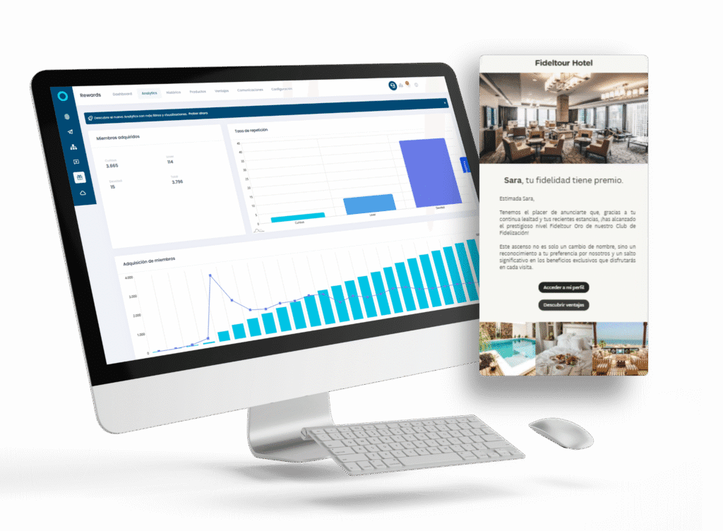 Fideltour’s Rewards module allows you to create customized loyalty strategies that reward guests for each interaction. Increase recurrence, recognize your best customers and communicate benefits automatically.